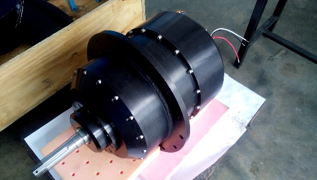 The unit uses a single motor on the drive shaft with no reduction gears (Quiet Operation), feedback device and the Motor Control, sensors and electronics in a single integrated housing – The unit will accept nominal AC and/or DC input power and a speed control command to provide shaft output at the commanded rotational speed.
